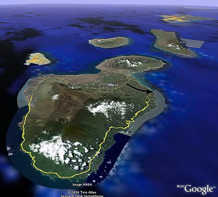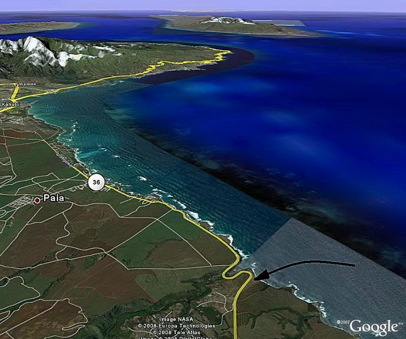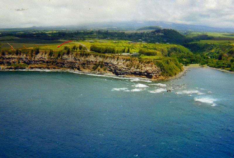 This beach blufftop site is on the North Shore of Maui. The trade winds here are strong and constant, world class wind & kite surfing. We strapped into a four seat doorless helicopter to film the site from the sea hovering between Ho'okipa and Jaws surfbreaks. To the West, here comes the cavalry as a squadron of windsurfers follow and one by one launch up at us thinking we are surf photographers. Not to disappoint, we played along cameras rolling.